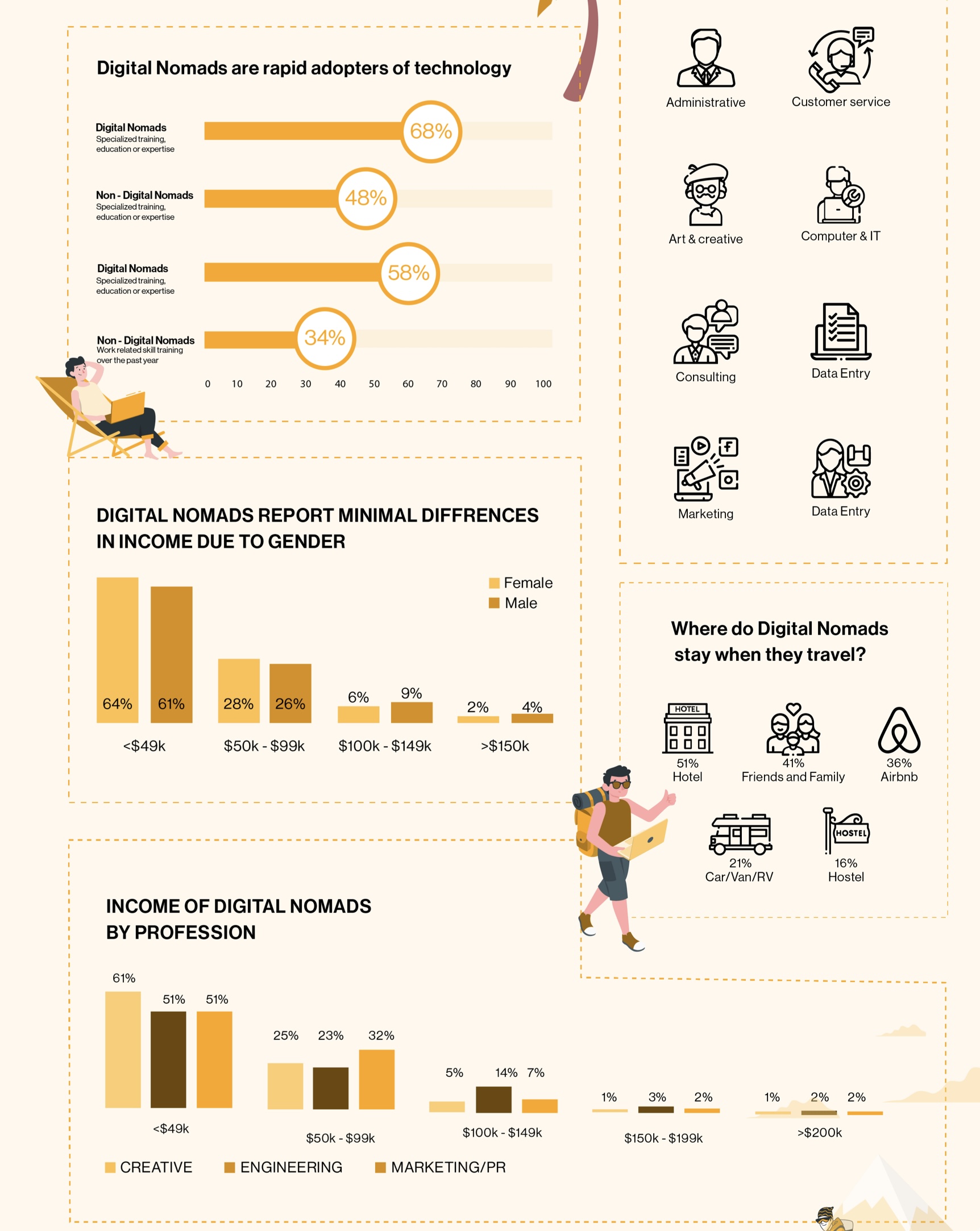 2) Identify trends and draw comparisons in the infographics given in class. Here are key elements of document 1: